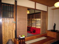 半兵衛麩の格子戸を開け暖簾をくぐると、時代物の展示品が目にはいってくる。 今は江戸時代の屏風とお弁当箱でした。