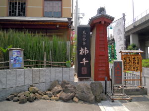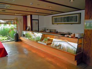 | 正面玄関 | お土産用、柿の葉すしや鯖の棒ずし。 吉野葛や伊賀の醤油はさめず、南高梅など、 柿千おすすめの逸品が沢山・・・ |