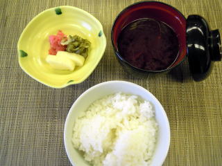 | ご飯・赤だし・御漬け物 | デザート(柿とレモンのジュレ) |
