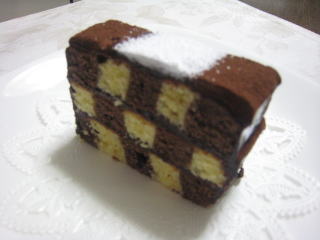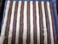 | 11, | 冷めたら、生地を3等分する。(市松模様になるように・・・) |